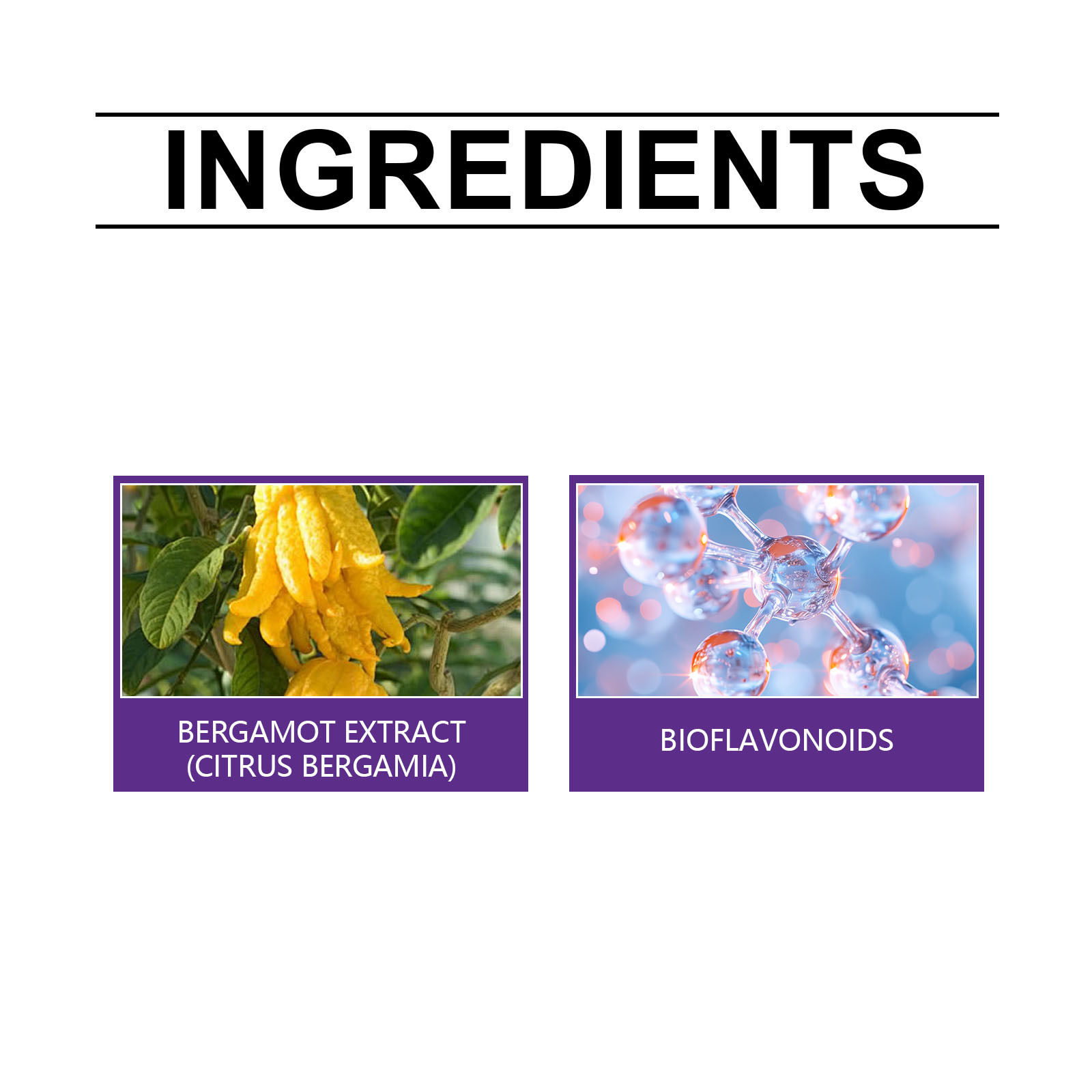 Ingredients: bioflavonoids, bergamot extract (bergamot)
